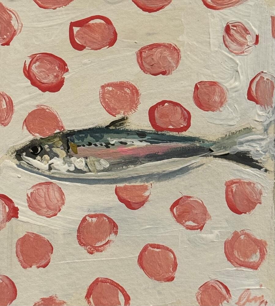 This is a fun little sardine painting for a kitchen or for someone who loves the theme This is a fun little sardine painting for a kitchen or for someone who loves the theme |