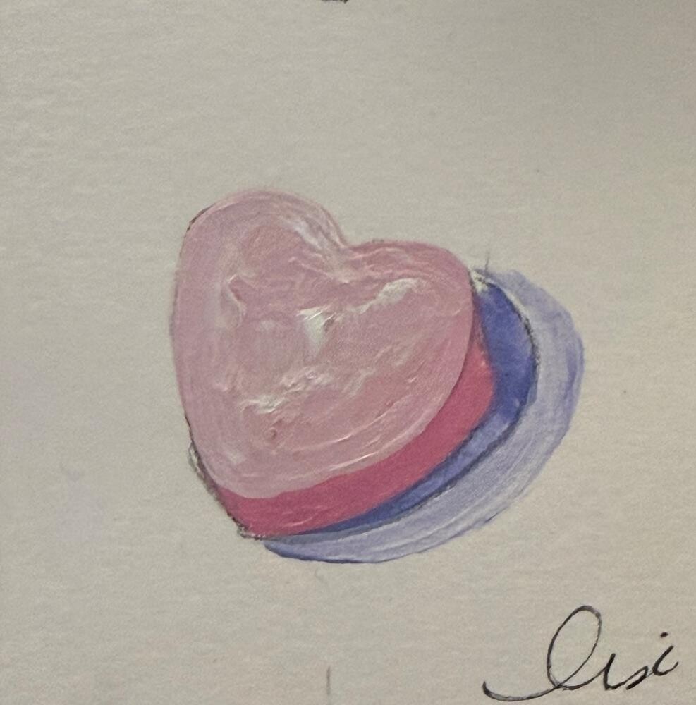 This is a conversation heart, these little paintings always look nice tucked in on a shelf or windowsill. This is a conversation heart, these little paintings always look nice tucked in on a shelf or windowsill. |