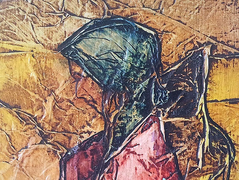 Original watercolor on tissue paper, fantasy portrait in muted earth tones that I have titled Gypsy Journey.