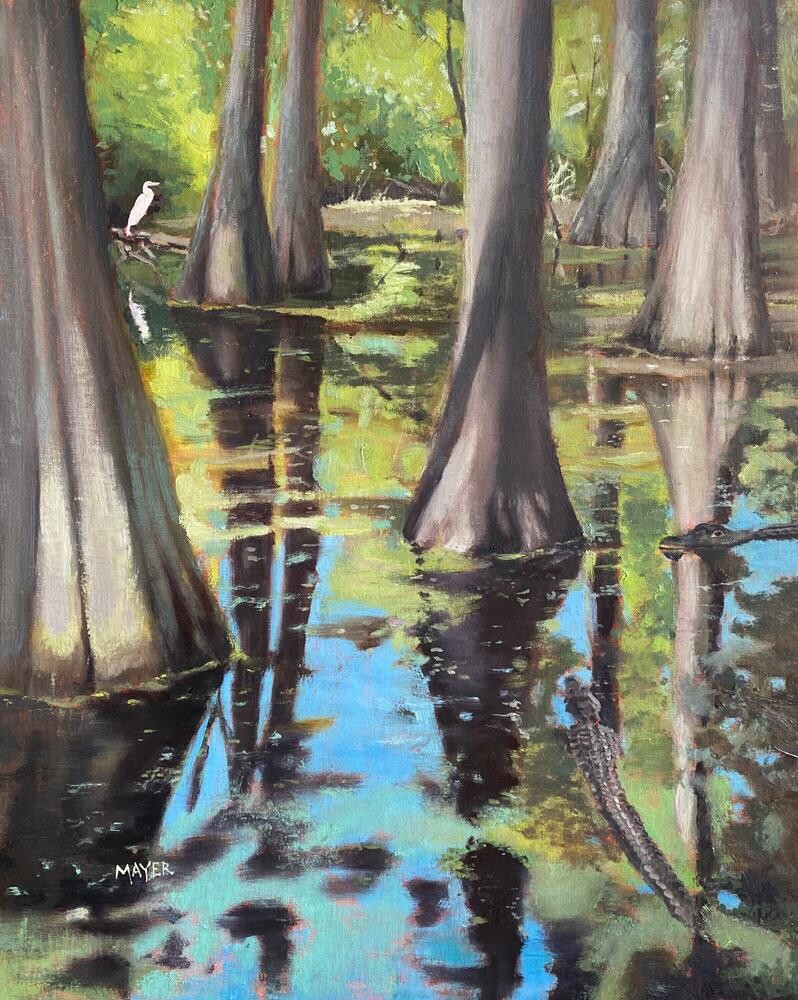 Here is a painting of Cypress Swamp during our hot and humid summertime in Mississippi. It is only a few miles from McNamara Road off the Natchez Trace Parkway in Farmhaven, Mississippi, where my family owned 100 acres.