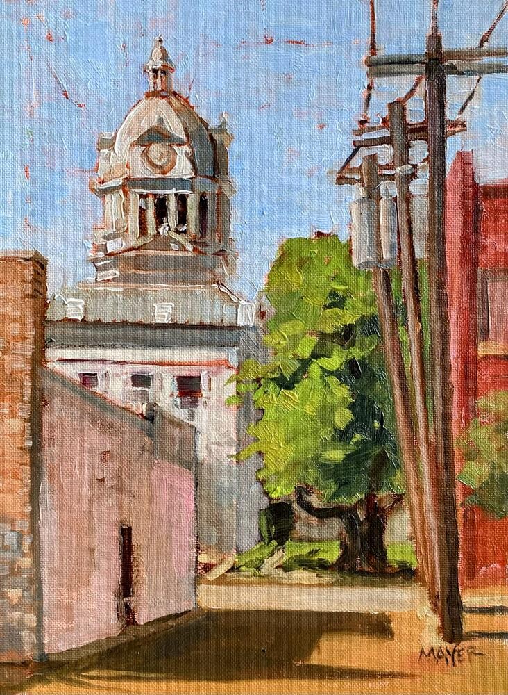 I had a great time painting this morning in Greenwood, Mississippi, for the Paint the Town plein air event. This courthouse cupola stood out to me. It looked rather stately - bathed in light. The alley wall and utility poles created a nice frame around it. I had a great time painting this morning in Greenwood, Mississippi, for the Paint the Town plein air event. This courthouse cupola stood out to me. It looked rather stately - bathed in light. The alley wall and utility poles created a nice frame around it. |