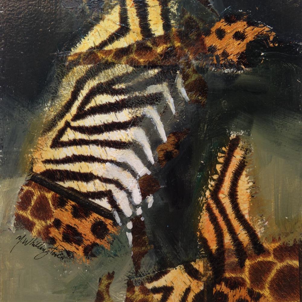 torn animal print napkin with acrylic painting on gessoed watercolor paper