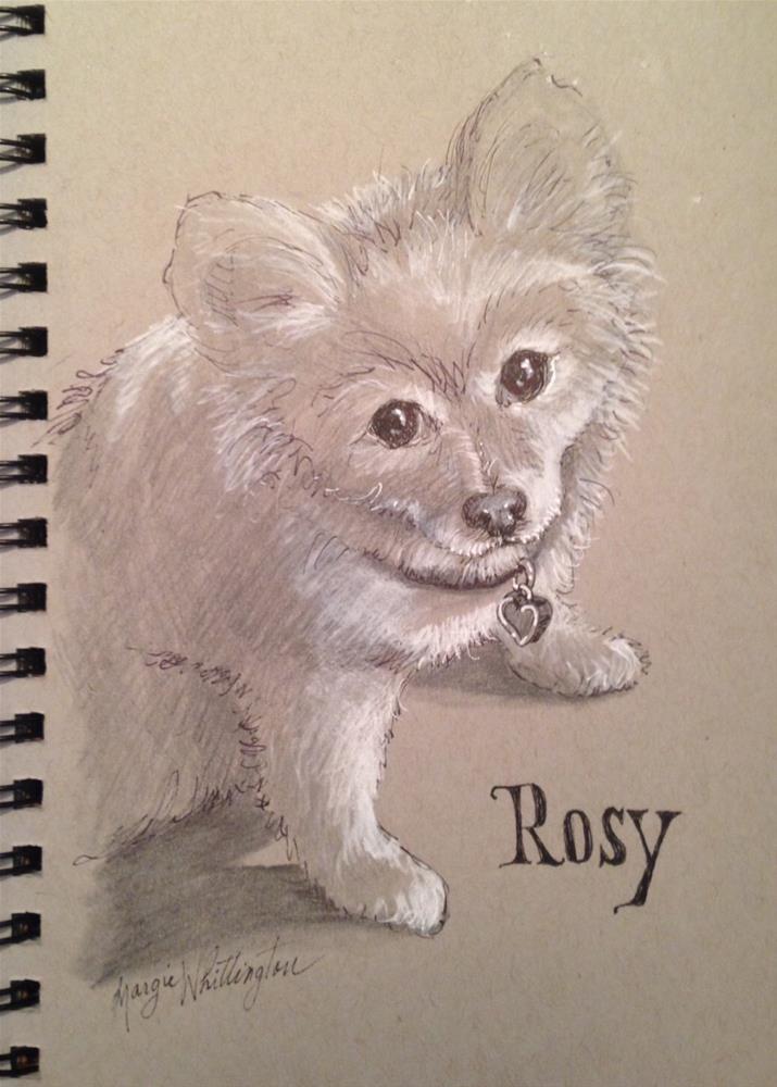 pet portrait on grey paper with ink, pencil and chalk.
