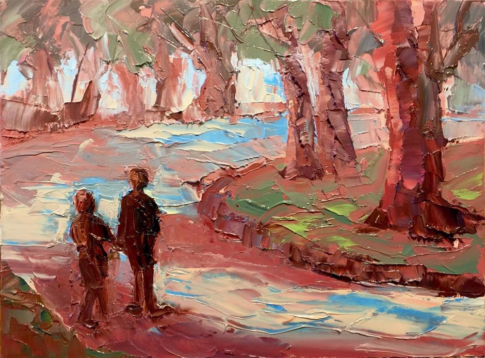 A Walk in Central Park, 9x12, oil on panel, palette kni...
