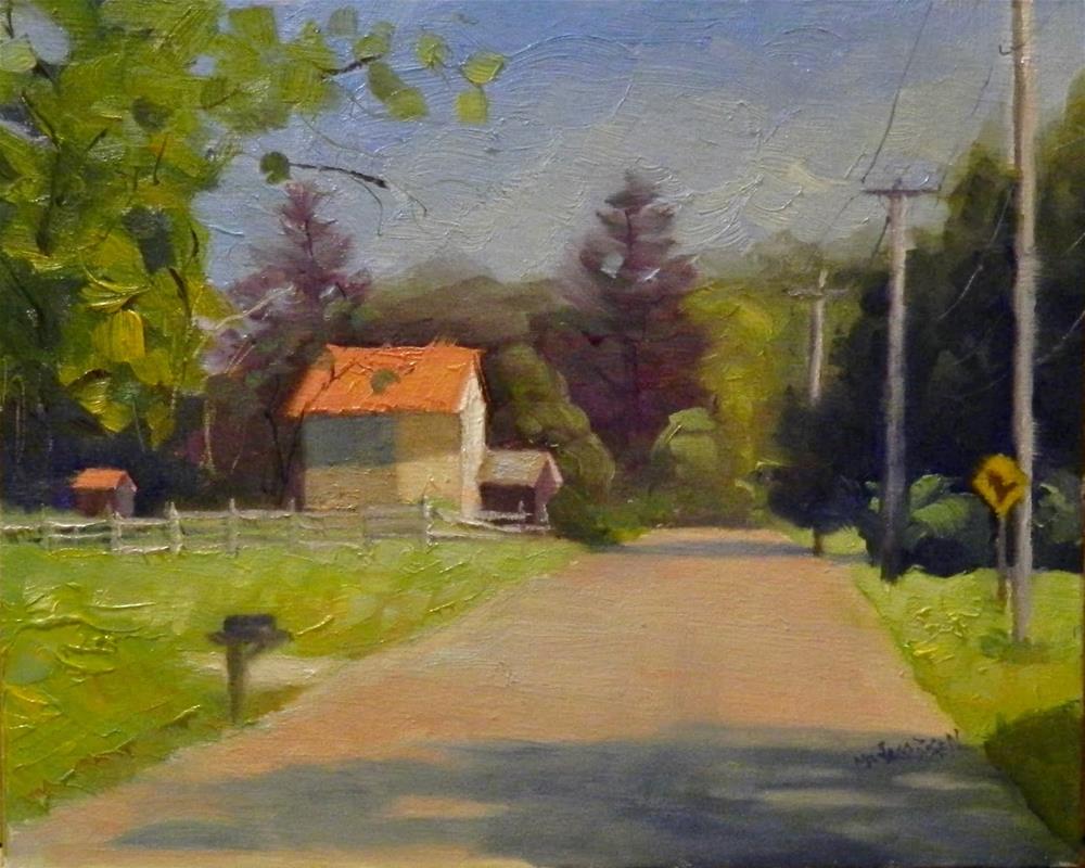 "Along the Way", 8x10, oil on panel, red-roof barn, far...