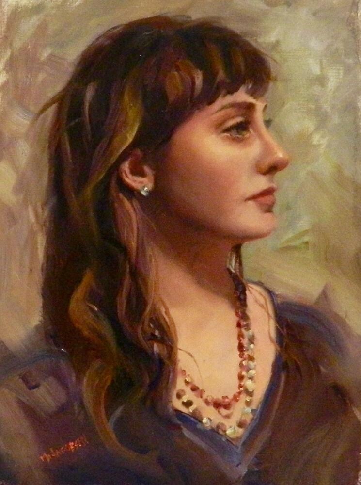 "Bangs and Baubles", 12x16, oil on Canson oil paper, p...