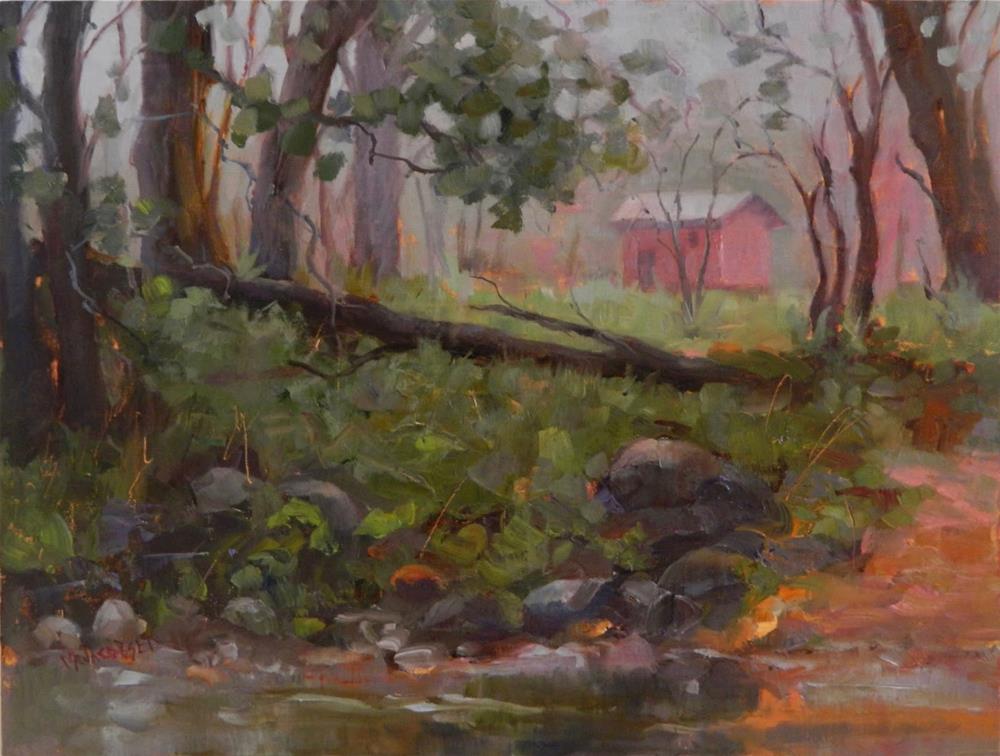 "Misty Riverbed", 12x16, oil study, chicken coop, Clift...