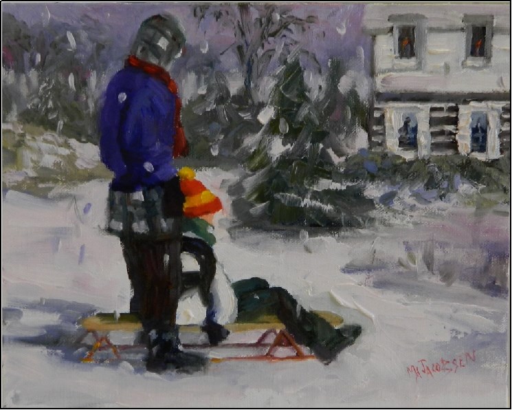 This was a small quick study painted on New Years Eve in memory of the happy years myself and my family spent living in Chester County Pa. It was a sledders paradise with many hills and no traffic. Last painting of 2016!