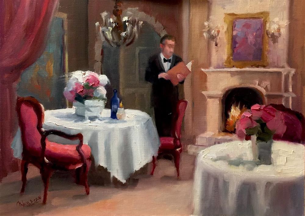 "This Table is Reserved", 12x16, oil, fine dining, rest...