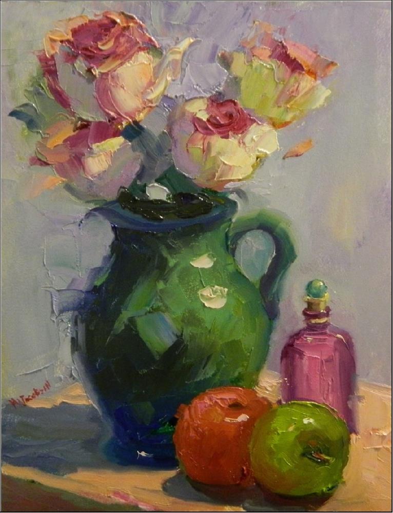 "Verte et Rouge", 11x14, oil on panel, green, red, flor...