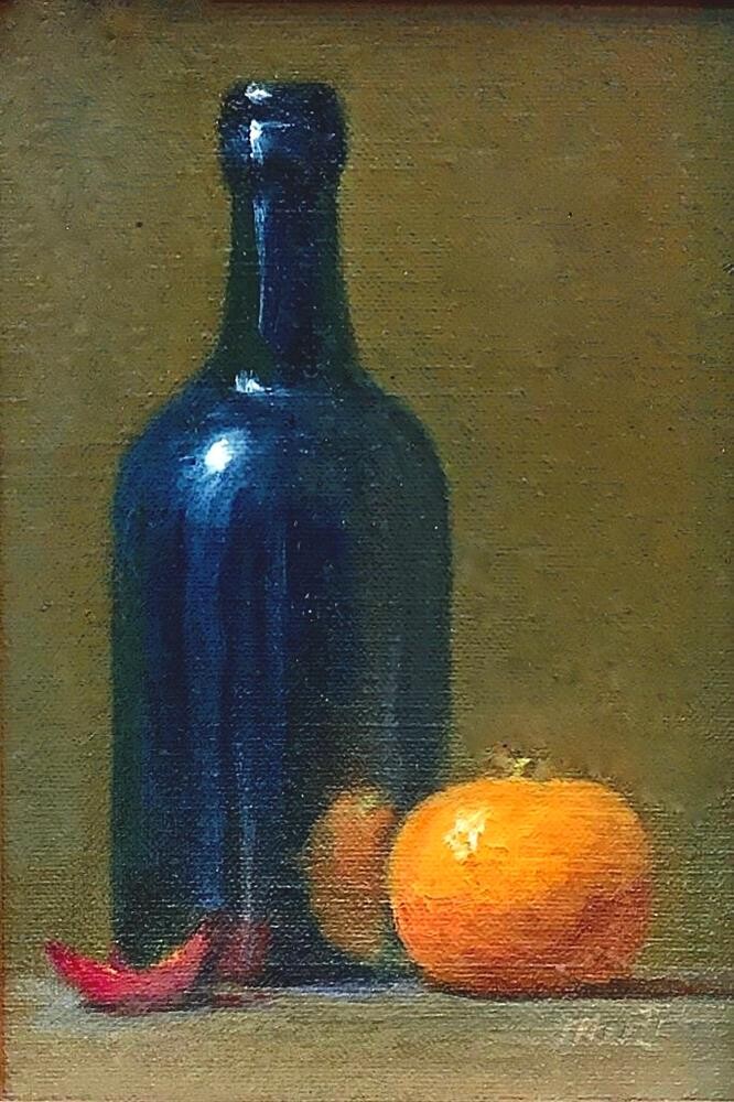 One of the favorite objects I've painted is this wine bottle. You'll see it in a few of my still lifes. I love the beauty and challenge of the reflections. The reflections must be noticeable, yet remain unnoticed. It often takes a subtle paintbrush loaded with diluted paint and a gentle touch to achieve the effect of a reflection gently hugging the surface of the glass. What do you think? Were my intentions achieved? One of the favorite objects I've painted is this wine bottle. You'll see it in a few of my still lifes. I love the beauty and challenge of the reflections. The reflections must be noticeable, yet remain unnoticed. It often takes a subtle paintbrush loaded with diluted paint and a gentle touch to achieve the effect of a reflection gently hugging the surface of the glass. What do you think? Were my intentions achieved? |