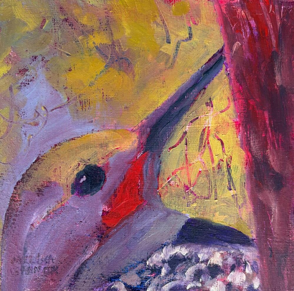 Media: oil and cold wax on 3/4" deep cradled wood, sides painted purple