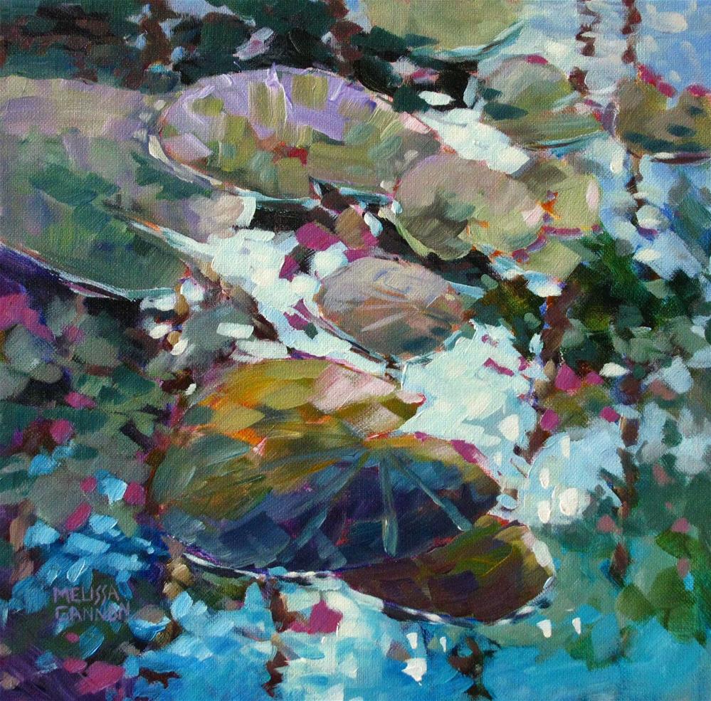 I live near a park with waterlilies and decided to go paint there. The best place to paint wasn't where they were blooming but I've gained a great appreciation of the design of the leaves on top of the reflections of the water.