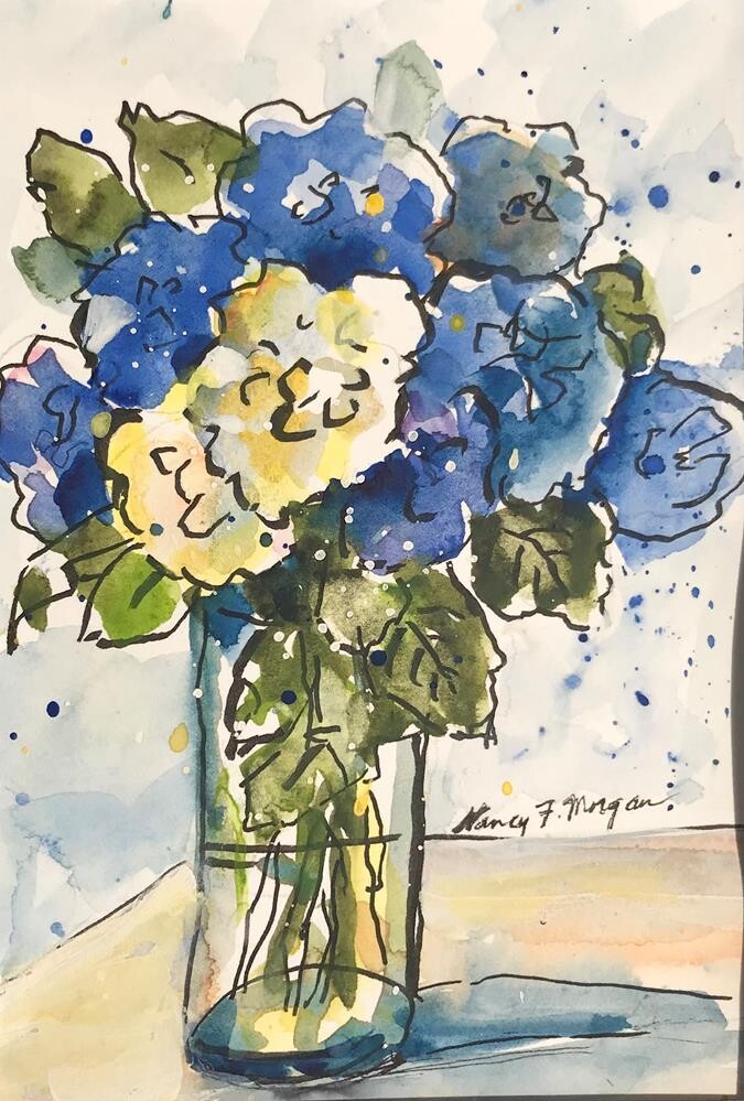 Media: Watercolor and ink in white mat