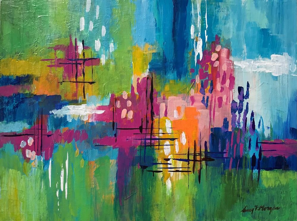 This one was painted with many layers in bright colors. I used brushes as well as a palette knife held on it’s side. It’s painted on gessobord ready for you to frame in the frame of your choice. This one was painted with many layers in bright colors. I used brushes as well as a palette knife held on it’s side. It’s painted on gessobord ready for you to frame in the frame of your choice. |