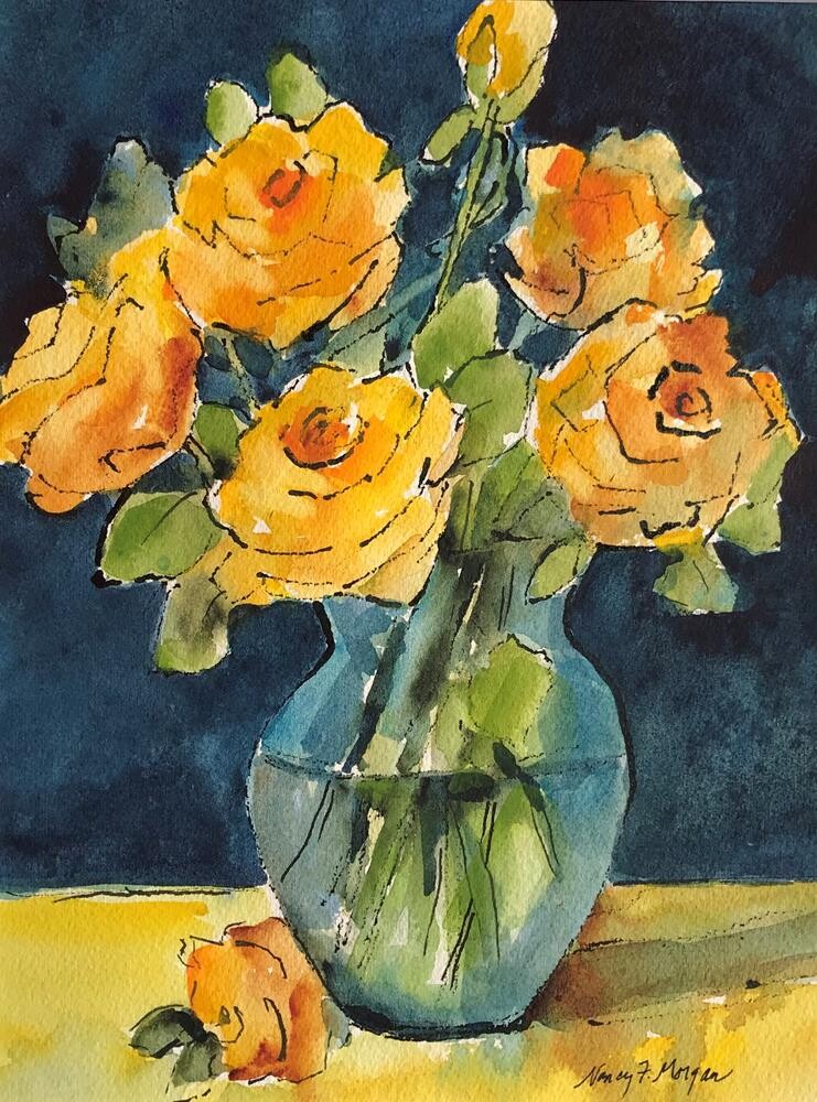 This watercolor and ink painting comes in a 12" by 16" mat ready to frame under glass. This watercolor and ink painting comes in a 12" by 16" mat ready to frame under glass. |