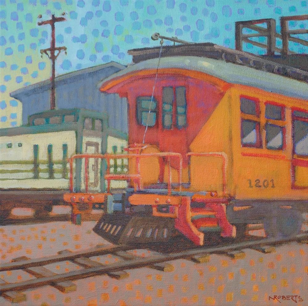 I painted this vintage trolley car at the Western Railway Museum, near Rio Vista in northern California. It was part of the Key System, an interurban streetcar system that connected cities in San Francisco's East Bay region for many years. The museum volunteers have restored it to running condition, complete with a glorious orange paint job. With its rubber roof and wooden platform it's also used as a work vehicle for repairing the labyrinth of overhead electrical wiring at the museum. I painted this vintage trolley car at the Western Railway Museum, near Rio Vista in northern California. It was part of the Key System, an interurban streetcar system that connected cities in San Francisco's East Bay region for many years. The museum volunteers have restored it to running condition, complete with a glorious orange paint job. With its rubber roof and wooden platform it's also used as a work vehicle for repairing the labyrinth of overhead electrical wiring at the museum. |