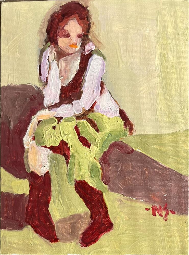 This figurative oil was painted in a California workshop, if I remember correctly. This figurative oil was painted in a California workshop, if I remember correctly. |