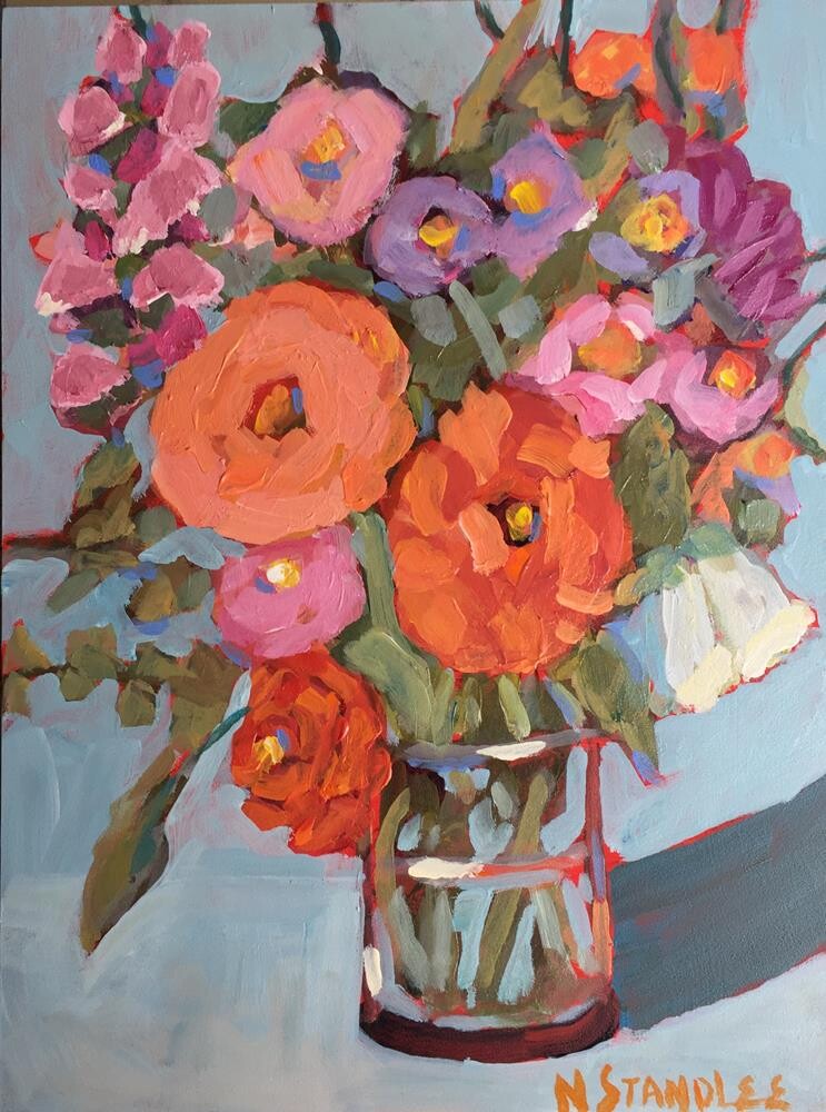 This 12x9" acrylic floral is painted on an Ampersand gessobord cradled panel, with 2" profile with a light stain. Inspired by classes by Fearless Florals since 2021. This 12x9" acrylic floral is painted on an Ampersand gessobord cradled panel, with 2" profile with a light stain. Inspired by classes by Fearless Florals since 2021. |