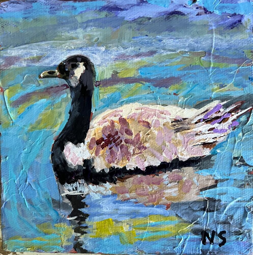 This goose is painted in acrylic on a 6 x 6 x 1 1/2" depth gallery, wrapped canvas. If you are interested in buying it, there is a form on Daily Paintworks to send an email. This goose acrylic painting is on a gallery wrapped canvas that is 1.5" inch deep and the edge is painted black. It is inspired by an online class Ive recently taken from Acrylic University taught by Dianna Shyne. We were asked not to post the price of any of our works that we have painted in class but if someone is interested, they can email me and I will give them the price of the work and make the arrangements for the sale. I will post the quoted price on DPW and shipping. (Similar sizes have similar prices) This goose is painted in acrylic on a 6 x 6 x 1 1/2" depth gallery, wrapped canvas. If you are interested in buying it, there is a form on Daily Paintworks to send an email. This goose acrylic painting is on a gallery wrapped canvas that is 1.5" inch deep and the edge is painted black. It is inspired by an online class Ive recently taken from Acrylic University taught by Dianna Shyne. We were asked not to post the price of any of our works that we have painted in class but if someone is interested, they can email me and I will give them the price of the work and make the arrangements for the sale. I will post the quoted price on DPW and shipping. (Similar sizes have similar prices) |