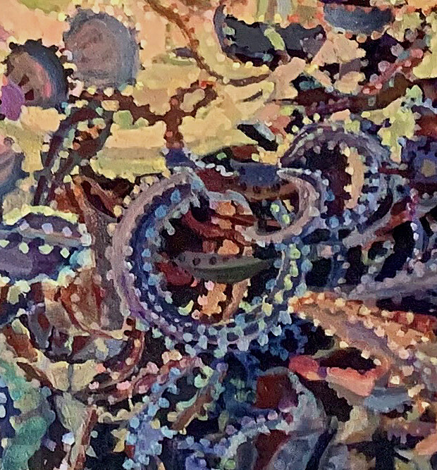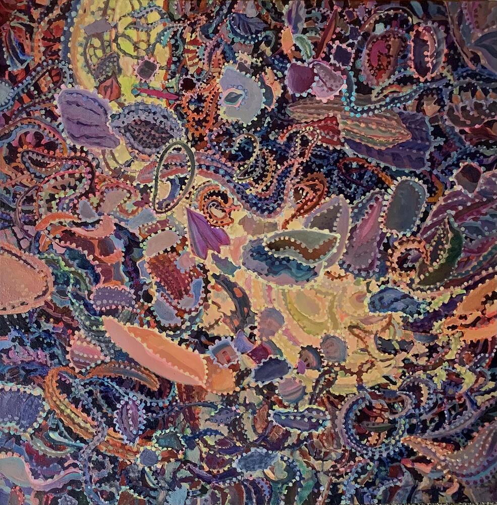 Pattern Series. Exploring Shapes and repeating motifs. After this painting was substantially complete, I found a photo of the inside of a cell, The resemblance is strikingly similar. Pattern Series. Exploring Shapes and repeating motifs. After this painting was substantially complete, I found a photo of the inside of a cell, The resemblance is strikingly similar. |