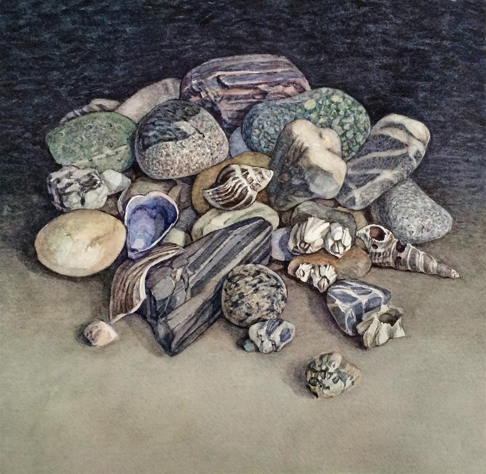 "Beaches" (RETAIL $ 980.00) Professionally FRAMED to archival standards, linen mat. Beach bits collected from a wonderful day at the seashore.