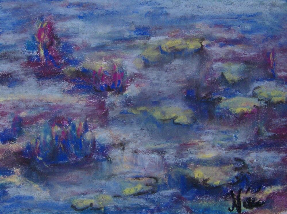 Pastel on drawing paper, the first in a series of small water lily paintings done from imagination Price includes free shipping and artwork comes carefully packaged with Glassine paper cover to protect it until you are ready to frame your painting under glass. Pastel on drawing paper, the first in a series of small water lily paintings done from imagination Price includes free shipping and artwork comes carefully packaged with Glassine paper cover to protect it until you are ready to frame your painting under glass. |