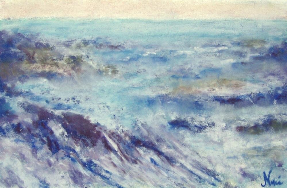 Soft pastel on drawing paper, inspired by the water hitting the rocks at a local Orange County beach in California There is a slight crease in the bottom left corner of the paper--price is discounted to reflect this (crease should not be noticeable once artwork is matted and framed). Price includes free USPS First Class shipping. Artwork comes packaged with Glassine paper cover to protect painting until you are ready to frame it under glass. Soft pastel on drawing paper, inspired by the water hitting the rocks at a local Orange County beach in California There is a slight crease in the bottom left corner of the paper--price is discounted to reflect this (crease should not be noticeable once artwork is matted and framed). Price includes free USPS First Class shipping. Artwork comes packaged with Glassine paper cover to protect painting until you are ready to frame it under glass. |