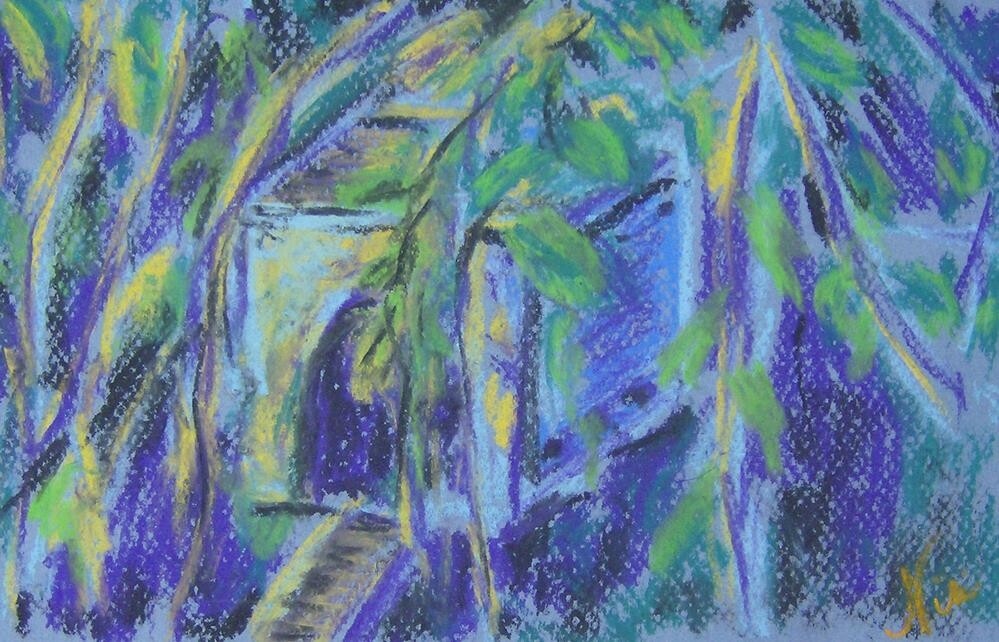 A small plein air soft pastel painting I did of a birdhouse hanging among the oak branches-- extra shadowy and hidden because it was dusk Piece comes carefully packaged with Glassine paper cover to protect pastel until you are ready to frame it under glass. A small plein air soft pastel painting I did of a birdhouse hanging among the oak branches-- extra shadowy and hidden because it was dusk Piece comes carefully packaged with Glassine paper cover to protect pastel until you are ready to frame it under glass. |