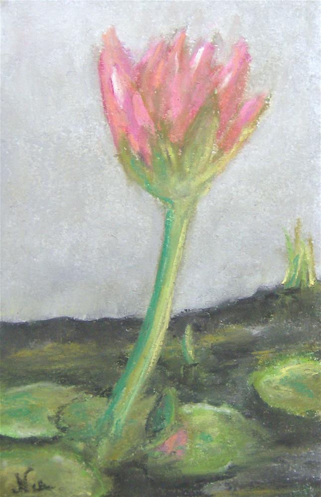 Although it was stuck in the corner of the lily pond, squished up against a wall, this little flower stood tall and bright and bloomed just fine where it was. Soft pastel on drawing paper-- piece comes carefully packaged with Glassine paper cover to protect artwork until you are ready to frame it under glass. Although it was stuck in the corner of the lily pond, squished up against a wall, this little flower stood tall and bright and bloomed just fine where it was. Soft pastel on drawing paper-- piece comes carefully packaged with Glassine paper cover to protect artwork until you are ready to frame it under glass. |