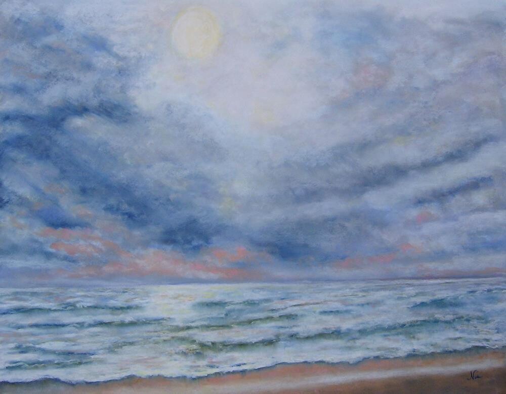 Dreamy afternoon light dancing on the waves at Breakwater Beach in Oceanside, California Created with soft pastels on Canson Mi-Teintes pastel paper Dreamy afternoon light dancing on the waves at Breakwater Beach in Oceanside, California Created with soft pastels on Canson Mi-Teintes pastel paper |