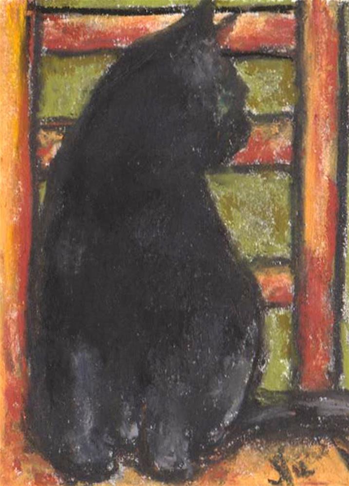 Miniature pastel painting of one of my favorite black cats-- piece will be carefully packaged with Glassine paper cover to protect artwork until you are ready to frame it under glass. Miniature pastel painting of one of my favorite black cats-- piece will be carefully packaged with Glassine paper cover to protect artwork until you are ready to frame it under glass. |