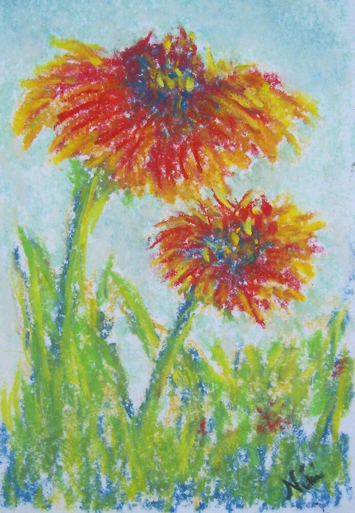 Cheerful spring flowers painted with soft pastel on drawing paper-- piece comes carefully packaged with Glassine paper cover to protect artwork until you are ready to frame it!