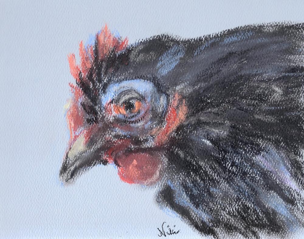 Soft pastel on light blue Strathmore paper A close-up of a chicken with soulful eyes Price includes free USPS Ground Advantage shipping. Piece comes carefully packaged with Glassine paper cover to protect artwork until you are ready to frame it under glass. Soft pastel on light blue Strathmore paper A close-up of a chicken with soulful eyes Price includes free USPS Ground Advantage shipping. Piece comes carefully packaged with Glassine paper cover to protect artwork until you are ready to frame it under glass. |