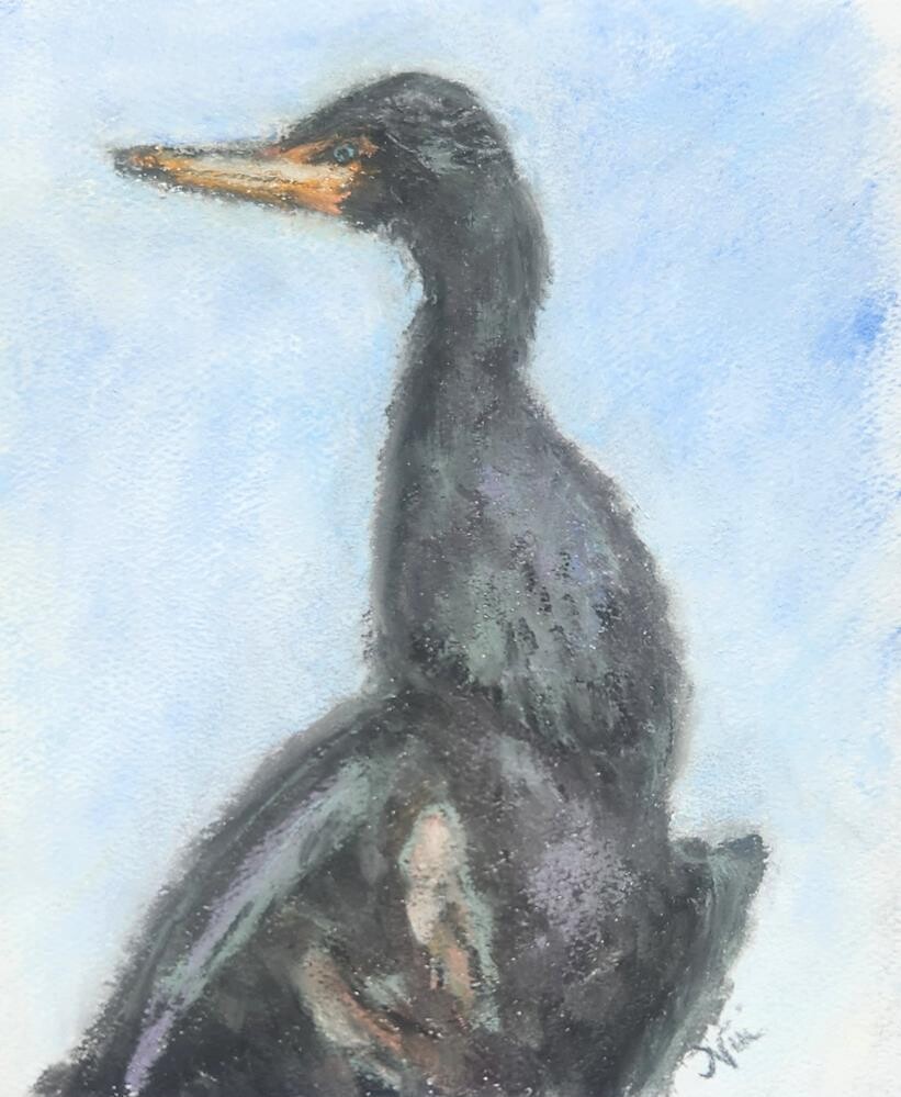 Soft pastel on Strathmore pastel paper-- a double-crested cormorant as seen in Oceanside, California at the harbor Piece comes shipped with Glassine paper cover to protect artwork until you are ready to frame it under glass. Soft pastel on Strathmore pastel paper-- a double-crested cormorant as seen in Oceanside, California at the harbor Piece comes shipped with Glassine paper cover to protect artwork until you are ready to frame it under glass. |