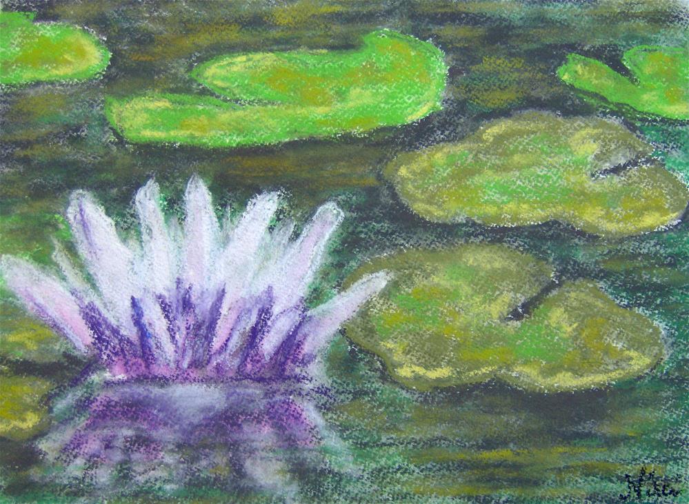 Created with layers of water-brushed and dry pastel on heavy textured watercolor paper-- a nice companion piece to "Lotus" Created with layers of water-brushed and dry pastel on heavy textured watercolor paper-- a nice companion piece to "Lotus" |