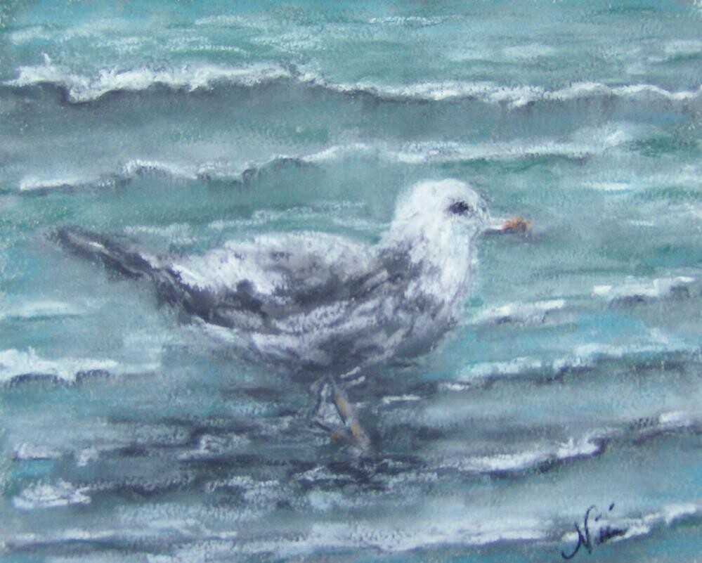 Soft pastel on Strathmore paper A seagull picking its way through the waves at Oceanside Harbor beach in California Soft pastel on Strathmore paper A seagull picking its way through the waves at Oceanside Harbor beach in California |
