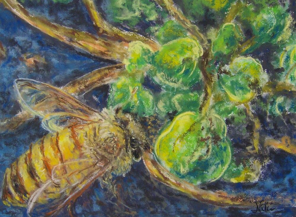 Water-brushed pastel layered with dry pastel on paper A honeybee stopping by a bowl of aquatic plants for a sip of water while out foraging Price includes free USPS Ground Advantage shipping. Piece comes carefully packaged with Glassine paper cover to protect artwork until you are ready to frame it under glass. Water-brushed pastel layered with dry pastel on paper A honeybee stopping by a bowl of aquatic plants for a sip of water while out foraging Price includes free USPS Ground Advantage shipping. Piece comes carefully packaged with Glassine paper cover to protect artwork until you are ready to frame it under glass. |