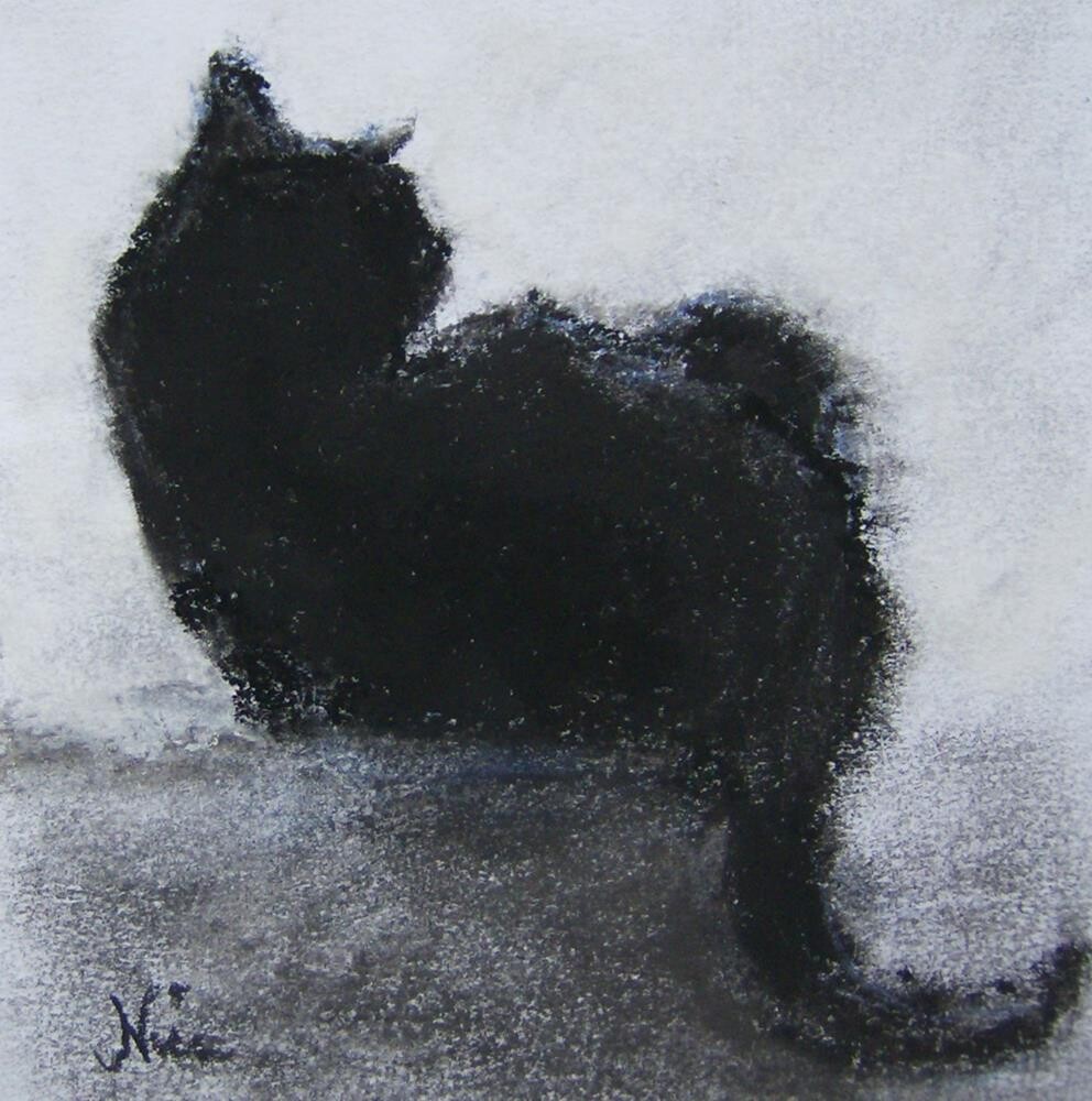 Note: sides are slightly under 4" Pastel on drawing paper, a black and white sketch of a favorite cat in a cozy but alert pose Price includes USPS First Class shipping. Piece comes carefully packaged with Glassine paper cover to protect artwork until you are ready to frame it under glass. Note: sides are slightly under 4" Pastel on drawing paper, a black and white sketch of a favorite cat in a cozy but alert pose Price includes USPS First Class shipping. Piece comes carefully packaged with Glassine paper cover to protect artwork until you are ready to frame it under glass. |