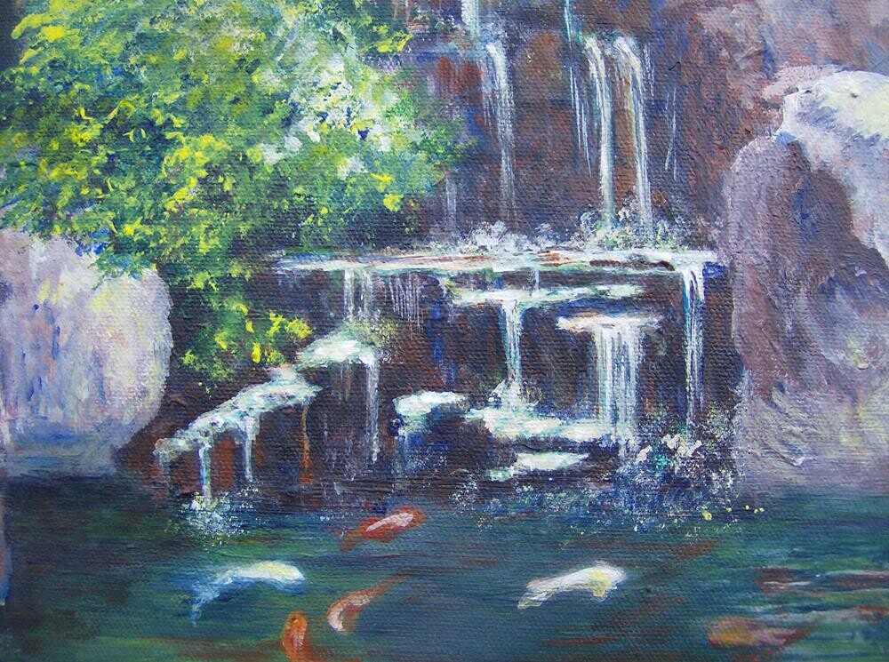 A piece that I worked on for over a decade, it has undergone a few transformations but the overall mood and colors stayed the same.Initially inspired by a photo I took at Hotel Kabuki in San Francisco, it became more about the light and the deep feeling of peace I wanted to convey in the painting. I went through many changes in life throughout the years that I worked on this piece. When it came time to give it a name, I immediately thought of the hymn "It is Well," (also known as "When Peace Like a River")--particularly the first verse:"When Peace, like a river, attendeth my way,When sorrows like sea billows rollWhatever my lot, thou hast taught me to sayIt is well, it is well, with my soul