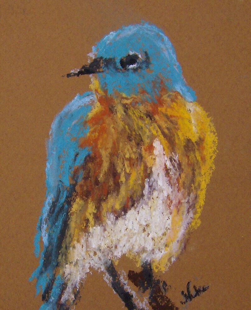 Third little bluebird painted in soft, impressionistic style with pastel on bisque-toned Canson Mi-Teintes paper Price includes free shipping and artwork comes carefully packaged with Glassine paper cover to protect it until you are ready to frame your painting under glass. Third little bluebird painted in soft, impressionistic style with pastel on bisque-toned Canson Mi-Teintes paper Price includes free shipping and artwork comes carefully packaged with Glassine paper cover to protect it until you are ready to frame your painting under glass. |
