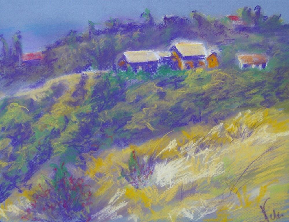 Plein air painting of a view from what used to be our old avocado grove in Fallbrook, California. I don't often have a chance to do plein air painting, so I consider these pieces something of a treasure both for the process and the outcome. Piece comes shipped with Glassine paper cover to protect artwork until you are ready to frame it under glass. Plein air painting of a view from what used to be our old avocado grove in Fallbrook, California. I don't often have a chance to do plein air painting, so I consider these pieces something of a treasure both for the process and the outcome. Piece comes shipped with Glassine paper cover to protect artwork until you are ready to frame it under glass. |