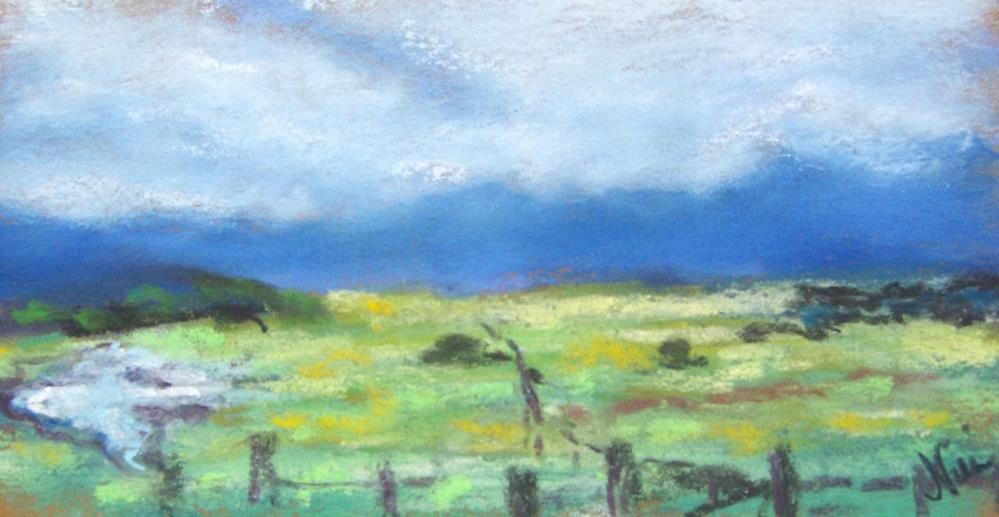 Soft pastel on Canson Mi-Teintes paper A small painting of the scenery from the highway as we passed the area of Lake Henshaw in Southern California Price includes free USPS First Class shipping. Piece comes carefully packaged with Glassine paper cover to protect artwork until you are ready to frame it under glass. Soft pastel on Canson Mi-Teintes paper A small painting of the scenery from the highway as we passed the area of Lake Henshaw in Southern California Price includes free USPS First Class shipping. Piece comes carefully packaged with Glassine paper cover to protect artwork until you are ready to frame it under glass. |