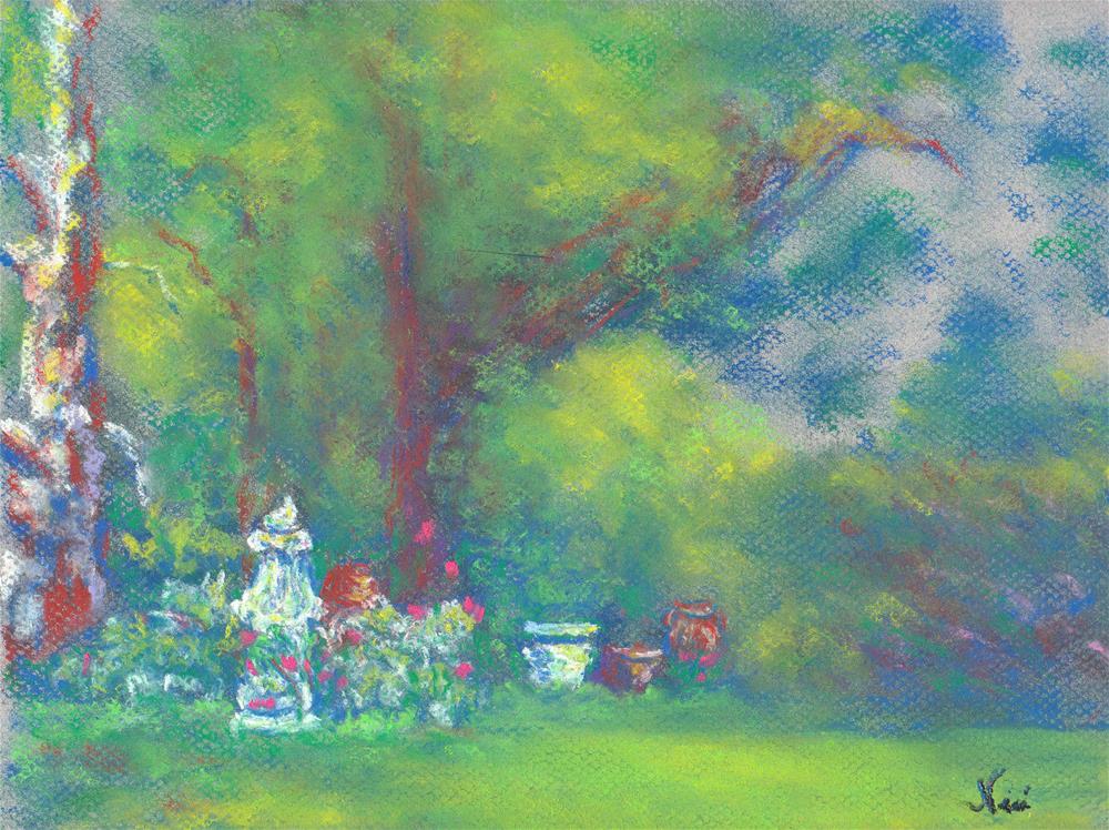 This soft, impressionistic pastel garden painting was inspired by a local garden in Southern California on a spring day.
