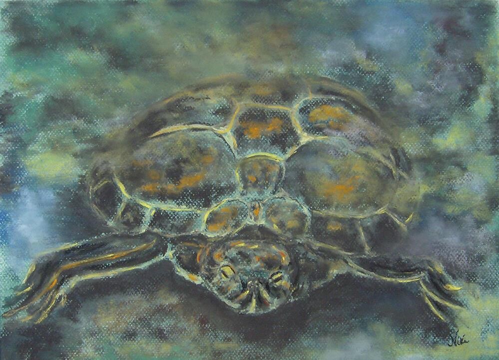 A curious turtle watching us from beneath the water in the lily pond-- Botanic Gardens in Del Mar, California Created with soft pastel on Canson Mi-Teintes pastel paper A curious turtle watching us from beneath the water in the lily pond-- Botanic Gardens in Del Mar, California Created with soft pastel on Canson Mi-Teintes pastel paper |