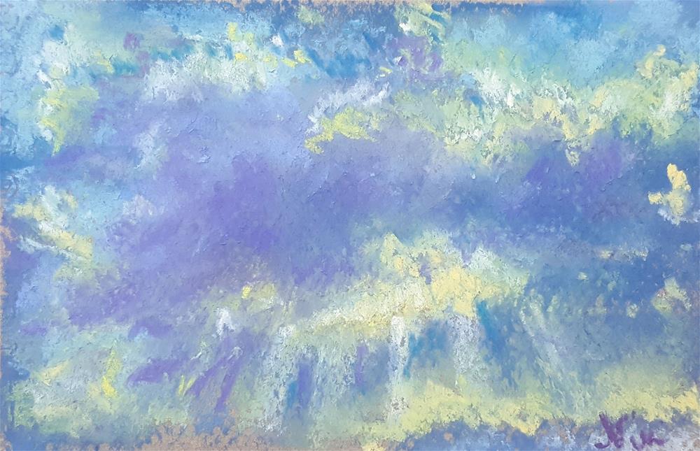 A miniature painting of one of those moments where the sun breaks through the late afternoon clouds-- pastel on Canson Mi-Teintes paper