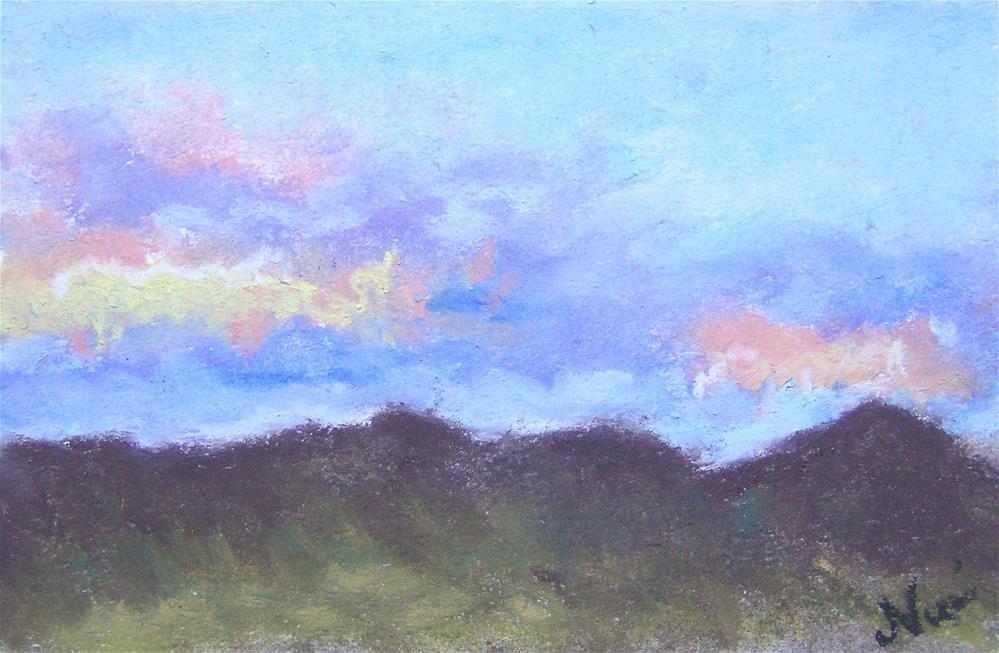 Miniature landscape pastel painting on drawing paper-- inspired by Psalm 118:24 and a typical sunrise we see here in Fallbrook, California