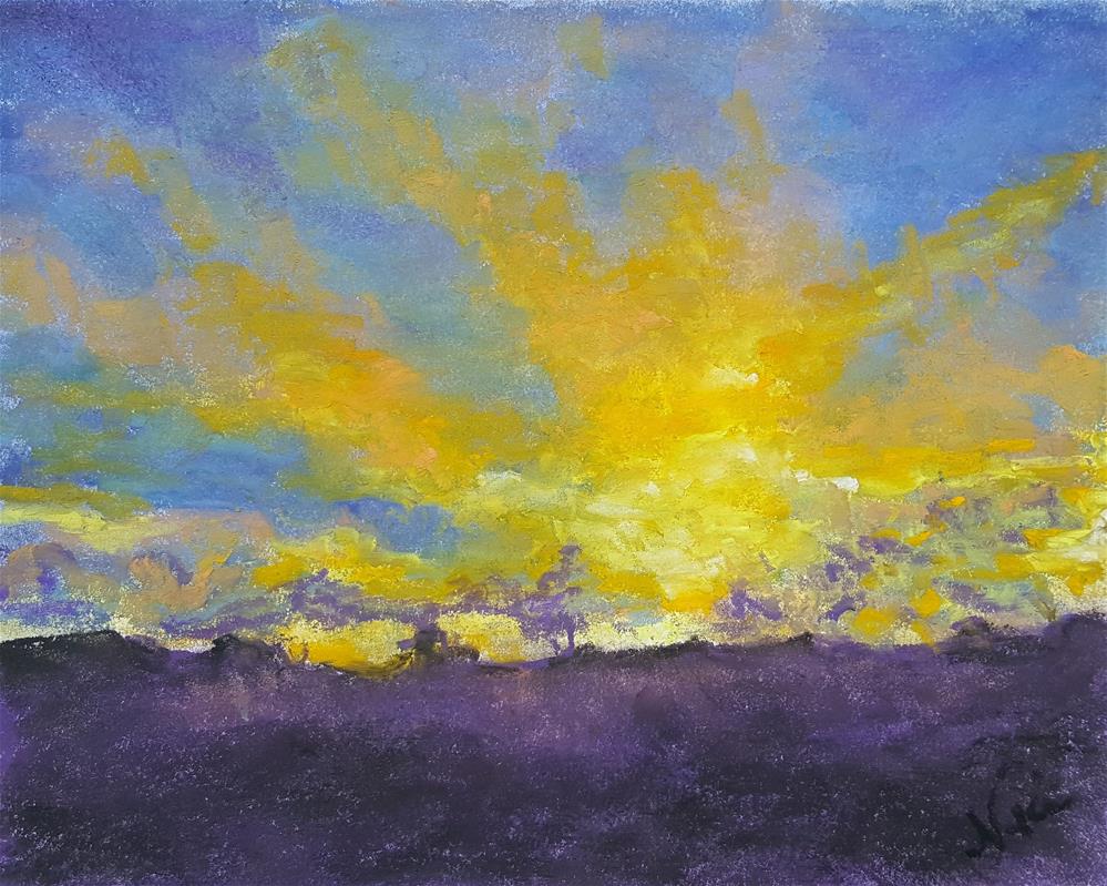 One of those spectacular displays the sun gives us before it slips behind the horizon for the night--created with pastel on drawing paper
