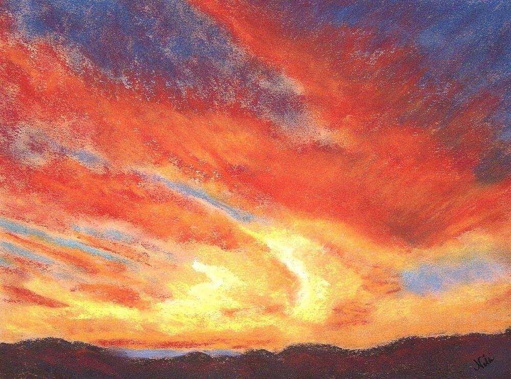 Another brilliant in Fallbrook, California! We get so many, it's like seeing a newly-painted sky each time. Soft paste on orange-toned Canson Mi-Teintes paper Price includes free USPS First Class shipping Another brilliant in Fallbrook, California! We get so many, it's like seeing a newly-painted sky each time. Soft paste on orange-toned Canson Mi-Teintes paper Price includes free USPS First Class shipping |