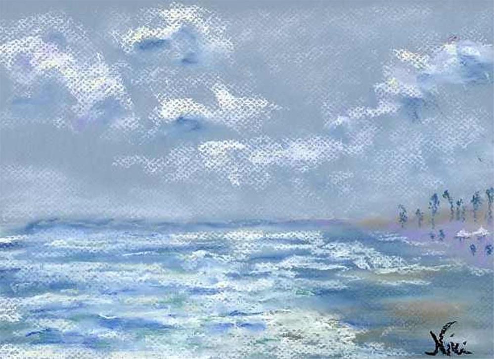 This painting was created from a photo I took walking along the south jetty at Oceanside Harbor, California. Pastel on Canson Mi-Teintes, this piece comes shipped with Glassine paper cover to protect the artwork.